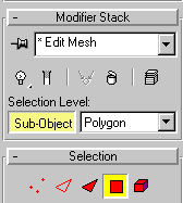 Change the view to Wireframe. Apply an Edit Mesh modifier and choose Polygon-level selection: