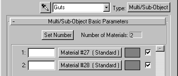 Name the material Guts. Set the number of (sub-)materials to 2.