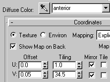 In the Coordinates rollout, tile the map to make the posterior end of the digestive system look like it has ridges.