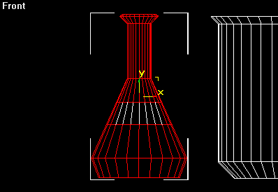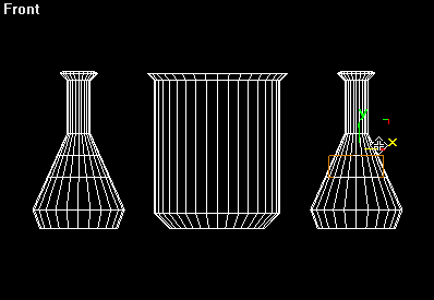 Open the Modify panel and choose Vertex sub-object. Click Refine and then add two more vertices to the side of the flask: