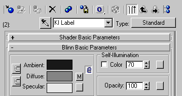 In the Blinn Basic Parameters rollout, set self-illumination to 70%: