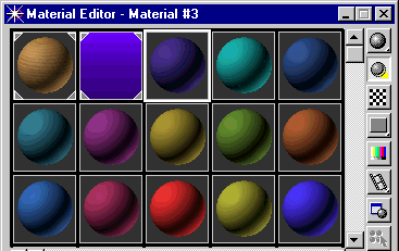 Open the Display command panel and click Hide by Hit. Click each of the flasks so that they disappear from view. Creating and Applying Glass Materials Open the Material Editor and select a new material sample. Right-click on the sample and choose 5 X 3 Sample Windows. The palette is redrawn to display more samples: