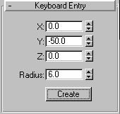 In the Keyboard Entry rollout, enter Y = -50, Radius = 10.