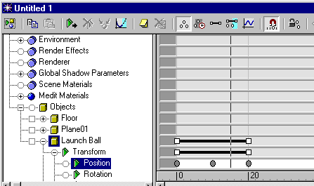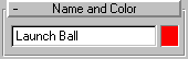 the Name and Color rollout, name the sphere Launch Ball.