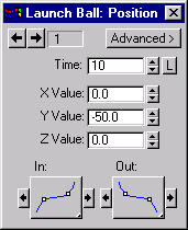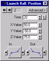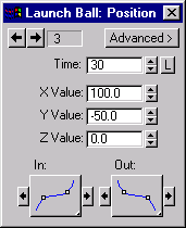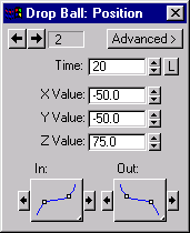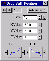 Drop Ball:Position dialog box for key 3, set X = -50, Y = -50, Z