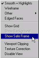 safe frame appears in the camera viewport.