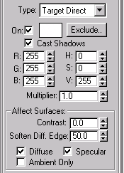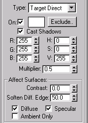 Open the Lights sub-panel and choose Target Direct.