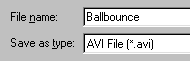 Name the file Ballbounce and choose the AVI file type: