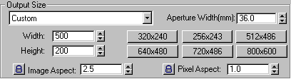 the Render dialog box, set the Output Size Width = 500, Height =