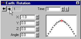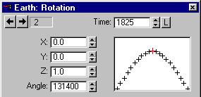 The Earth:Rotation dialog box appears for key 1. Click the right