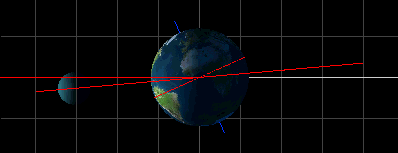 In this lesson, you animate the rotation of the Earth over the course of a year by making the Earth spin on its axis 365 times. Then you animate the Moon going around the Earth and the Earth going around the Sun. By using the default playback speed of 30 frames per second, and setting the number of frames to 1825, the animation will last just over 60 seconds (1825 f ÷ 30 fps = 60.83 s). Why use 1825 instead of 1800? Because it causes the Earth to rotate exactly 5 frames per day (365 x 5 = 1825). This regular division of 5 frames per day will later help you visualize the sun's apparent movement in the sky from a location on the Earth. |