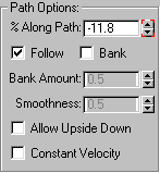 the Motion panel, drag downward on the %Along Path spinner. Move