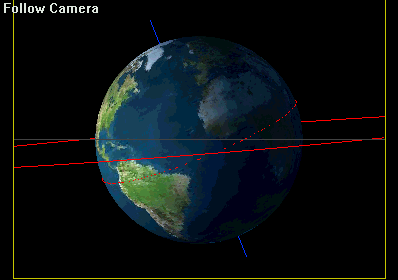 Pick Earth for the Look At Target. The camera moves to the path. The camera's new target aligns to the Earth, leaving the old target behind:
