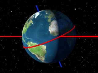 To animate the seasons from the South Pole, shift-clone the Above the Earth orbit and the Above the North Pole camera and place them below the Earth. Or if you are in a hurry, open the Material Editor and rotate the coordinates of the Earth.jpg map 180° in W. Name the output file SeasonsSP.avi.